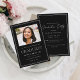 Este é um convite simples e moderno para festas de formatura universitárias/universitárias usando uma foto minimalista do solteiro e design preto e branco clássico. O lado inverso inclui uma mensagem que você pode personalizar. Entre em contato com o designer para obter informações relacionadas a este design.