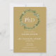 Apresentando uma granja botânica chica e uma tipografia clássica em fundo dourado, este elegante convite de festa de formatura de doutorado pode ser personalizado com sua foto de formando no verso. Projetado por Thisnotme©