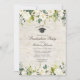 Um convite à festa de formatura rústica elegante com elementos de aquarela florais brancos num fundo de latido de pássaros falsos, com fotografia em reverso. Copyright Elegant Invites, todos os direitos reservados.