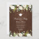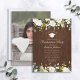 Um elegante convite à festa de formatura rústica, com elementos de aquarela florais brancos num fundo de madeira falsa, com fotografia invertida. Copyright Elegant Invites, todos os direitos reservados.
