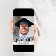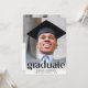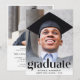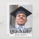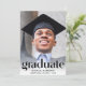 Um convite elegante para a festa de formatura que mostra a foto do formando sobreposta com "Formando" em letras grandes de tendências e seu nome, ano escolar e de aula em uma simples tipografia. No verso, adicione uma foto adicional e os detalhes da sua festa.