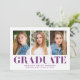 Convide convidados para a sua festa com nossos convites para festas de formatura de coral Bold, na moda! A festa de formatura moderna convida a mostrar três de suas fotos favoritas com "Formando" abaixo, em um estilo roxo de fontes modernas, e o nome do formando, o nome da escola e o ano de graduação. O verso exibe os detalhes da sua festa de formatura abaixo da frase "Comemoração do vamos" com um fundo roxo sólido.