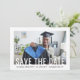 Compartilhe as notícias alegres de uma próxima festa de formatura com fotos personalizadas modernas, salve os convites de data. A imagem e o texto deste modelo são simples de personalizar com o nome do formando, o ano de aula e outros detalhes do lançamento da sua escolha. Todas as cores também podem ser personalizadas com a ferramenta design Zazzle. A design a preto e branco apresenta uma tipografia moderna minimalista, uma caligrafia em negrito e uma foto favorita, como uma imagem ou figura de mais velho da cerimônia de inauguração. Estes cartões de na moda são uma maneira elegante de compartilhar uma celebração especial de dia com a família e os amigos. Parabéns ao formando!