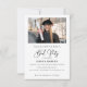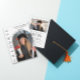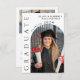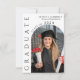 Este moderno convite para a graduação de fotos em na moda apresenta uma foto vertical em um arco e um nome de script "FORMANDO" personalizável, nome do segundo grau e classe de 2024 na frente. o verso tem um convite com detalhes da festa. Excelente para celebrações de segundos graus, universidades ou universidades.