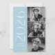 Convites de festa de formatura para 2025 com três fotos do formando localizadas à direita do design em um layout vertical. "2025" é apresentado em letras brancas, modernas de arte, com um fundo azul-céu. Personalize o convite para festa de formatura de fotos moderno, adicionando o nome do formando e o nome da escola. A design reverte para exibir seus detalhes de festa de formatura com um fundo geométrico azul-céu e branco. Perfeito para segundos graus e formandos!