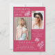 A Rosa claro moderna Fuschia Butterfly A Foto Festa de formatura Invtions apresenta o texto simples "Parabéns ao Formando", acentuado com uma flor e borboletas com duas de suas fotos favoritas e personalizado com nome e detalhes de festa de formatura na elegante tipografia do roteiro branco. Personalize editando o texto nas caixas de texto fornecidas e adicionando suas fotos favoritas. Elaborado por ©2023 Evco Studio www.zazzle.com/store/evcostudio