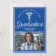 Este clássico convite à festa de formatura da faculdade de medicina azul para uma enfermeira ou um médico apresenta tipografia branca clássica sob um caduceus médico e o seu nome para a faculdade de 2025. Personalize com seu ano de graduação com a elegante caligrafia para um convite de formando universitário personalizado para excelente.