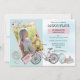 O anúncio da formatura do jardim de infância e design de festas dotados da foto do seu filho cercado por acessórios temáticos da escola, como um atlas do globo, um notebook com o ano da graduação, uma bicicleta, mochila e livros com um cupcake bonito e delicioso sentado no topo. Design composto por Holiday Hearts Design (direitos reservados).