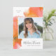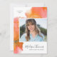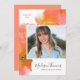 Este anúncio de graduação em laranja, rosa e ouro apresenta bonito abstrato de aquarelas e adoráveis letras de caligrafia. Adicione sua foto favorita à frente do convite e use a modelo para incluir o nome do formando, o ano de graduação e a escola. Uma textura aquosa brilhante é pintada através do convite atrás da foto. Na parte traseira do convite da parte de formando, adicione facilmente os detalhes da sua parte ao modelo.