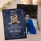 Um convite à festa de formatura de fotos rústico, moderno, elegante e chic com um tema de denim e diamantes. Ele apresenta um fundo denim, um par de botas de vaqueira com um detalhe de rosa coberto por rochas (este é um efeito digital), e tipografia em branco. Um design de "denim e diamantes" chico para uma mulher na sua formatura!