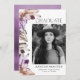 Convide convidados para a sua festa de formatura com nossos convites para festa de formatura de fotos modernos. O design apresenta uma borda de cristais de aquarela pintados em tons de rosa e roxo. O "Formando" é apresentado numa fonte de serifa negra moderna. Personalize a frente dos convites de festa de formatura exclusivos, adicionando sua foto, seu nome, nome da escola e ano de graduação. O convite é revertido para exibir seus detalhes de festa de formatura em texto branco com um lindo fundo de aquarela roxa.