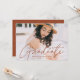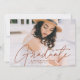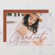Convide convidados para comemorar o formando com nossos convites para a graduação em na moda. Os convites para a graduação apresentam a foto do formando com "Formando" em uma cobertura de roteiro de caligrafia moderna marrom-terraota. Personalize a frente do convite para a formatura moderna adicionando o nome do formando, o nome da escola e o ano de formatura. O convite reverte para exibir seus detalhes de festa de formatura e um padrão geométrico trendy e pontilhado branco.