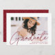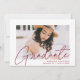 Convide convidados para comemorar a formatura com nossos convites para festa de formatura de fotos modernos. Os convites da festa de formatura de tendências apresentam a foto do formando com "Formando" em uma cobertura de script de caligrafia moderna. Personalize a frente dos convites adicionando o nome do formando, o nome da escola e o ano de graduação. O convite reverte para exibir seus detalhes de festa de formatura e um padrão geométrico giro e pontilhado branco.