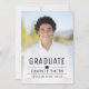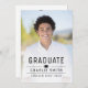 Anúncios de graduação em tipografia modernos e mínimos com fotos, festa de formatura divertida convidada no fundo em preto e branco, Personalize-o com sua própria foto e informações sobre festas.
