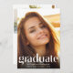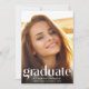 Um na moda e elegante anúncio de graduação e convite de festas que mostra sua foto de formando sobreposta com "Formando" em um grande gráfico branco de tendência e seu nome, escola e ano de aula em uma simples tipografia branca. No verso, adicione uma foto adicional e os detalhes de sua festa.