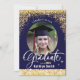 Convite para Festa de formatura de Fotos Azul Elegante Dourada Glitter Espumante Azul Celebre sua festa de formatura com esta elegante e festiva carta de convite de luxo brilhante, brilhante, de ouro, com belas caligrafias manuscritas. Todos os textos estão pré-organizados para que você personalize fácil e rapidamente com seus próprios detalhes.
