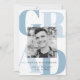 Convide convidados para comemorar o formando com nossos convites para festas de formatura Bold Letters! Os convites para a festa de formatura moderna apresentam a foto do formando no meio cercado por "Formando" em letras azuis em negrito. Personalize a frente adicionando o nome do formando, a escola e o ano de graduação. A parte traseira do convite apresenta espaço para os detalhes da sua festa em branco com um fundo azul.