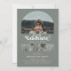 Um design moderno com tipografia retrógrada! Crie um convite de festas de formando com este modelo de foto de arco retrorreflector divertido. Texto branco em um fundo verde sábio, todas as cores podem ser personalizadas. O modelo simples é fácil de personalizar com seus próprios detalhes de eventos.