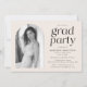 Convide convidados para sua festa de formatura com nossos convites para festa de formatura de fotos em chic. Os convites para a festa de formatura de na moda apresentam a foto do formando moldada por um quadro em forma de arco colorido. O "Partido Formando" aparece em caracteres negros e italicizados. Personalize a frente do convite de festa de formatura de tendências adicionando o nome do formando, o nome da escola, o ano de graduação e os detalhes da festa. O convite inverte para exibir um padrão de círculo preto e creme.