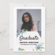 Simples cores pastel convite para Festa de formatura floral com a foto vertical do formando com "formando" exibido em letras negras modernas Personalizar a foto. O convite reverte para exibir os detalhes da sua festa de formatura com uma simples estrutura dourada em um plano de fundo branco. Personalize este design com sua mensagem e informações personalizadas. Todas as designs são impressas.