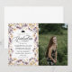 Apresentando o nosso Convite à Festa de formatura Fotográfica Floral de Flores Roxas Modernas, uma celebração na moda de realização e beleza natural. Apresentando um design contemporâneo adornado com flores silvestres roxas vibrantes contra um pano de fundo moderno, este convite exude elegância e estilo fresco. Coloque o tom para uma festa de formatura memorável cheia de alegria, risos e a vibrante tontura de primavera. Esteja você celebrando segundo grau, faculdade, ou além, este convite adiciona um toque de capricho e charme ao seu evento. O vamos honra as realizações do formando e brinque ao seu futuro brilhante cercado pelo esplendor colorido da natureza.