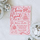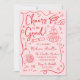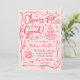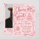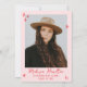 Celebre seu formando de estilo com este convite de festa de formatura de tendências que apresenta "Saúde ao Formando!" em um guião vermelho caprichoso! Diante de uma rosa claro, esta divertida e festiva design é decorada com ilustrações desenhadas à mão de um boné de formatura, diploma, pilha de copos de champanhe, bola de disco e muito mais — perfeito para uma vibração viva e celebratória. A frente é totalmente personalizável, permitindo que você adicione o ano de graduação, o nome do formando e os detalhes da festa. O verso mostra uma foto personalizada de mais velho com seu nome, escola e ano de graduação mostrados abaixo. Ideal para formandos segundos graus e universitários, este convite para o partido na moda e formando moderno é uma obrigação para uma celebração inesquecível. Personalize o seu hoje!