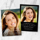 Comemore suas conquistas de formando com este elegante anúncio de graduação em preto e convite de festas. Sua foto preenche a frente do cartão, coberto de "Formando" em uma escrita branca-chic; por baixo, adiciona seu nome, ano escolar e ano de aula em tipografia clássica de serifa branca. No verso, adicione uma fotografia adicional e os detalhes da sua festa de formatura em letras brancas simples.