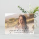 Convite de festa de formatura elegante com a foto do formando sobreposta com "formando" em um roteiro moderno de chic e seu nome e ano de classe em caracteres simples. No verso, adicione os detalhes da festa de formatura.