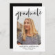 Convide convidados para a sua festa de formatura com nossos convites de festa de formatura de Script Preto e Trendy & na moda. Os convites de festa de formatura exibem sua foto em branco com "formando" em uma camada preta de script escrita à mão. Personalize a frente adicionando seu nome, escola e ano de graduação. O verso do convite apresenta os detalhes do seu partido em texto branco contra um fundo preto sólido.