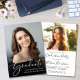 Comemore suas conquistas de formando com este elegante anúncio de graduação e convite de festas. Sua foto favorita preenche o cartão com "Formando" colocado em cima em um roteiro branco-na moda, e por baixo, adicione seu nome, escola e ano de aula. No verso, adicione uma fotografia adicional e os detalhes da festa de formatura ou da casa aberta.