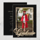 Convite para festa de formatura de fotos em preto e ouro elegante, com fonte moderna e dentro de foto estrelada.