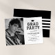 Celebre o marco do seu formando com nossos convites simples de festa de formatura preto e branco da varsity com uma foto do formando, um boné de formatura e um modelo de texto moderno que é fácil de personalizar.