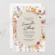 Prontos para comemorar em estilo? Nosso convite para festa de formatura de flor selvagem está explodindo com charme floral, perfeito para adicionar um toque da natureza ao seu evento especial. Apresenta um design floral de aquarela, 1 fotografia no verso e uma tipografia moderna. Personalize adicionando sua foto, nome, escola e outros detalhes. Fotos de prostooleh / Freepik.