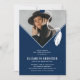 A graduação é uma ocasião importante que merece ser celebrada, e seu dia especial merece um convite para a partida. Nosso convite à festa de formatura azul de foto minimalista certamente se destacará da competição. Este convite elegante e moderno apresenta uma fotografia em forma de um boné de formando com o punho, juntamente com um simples modelo de texto que pode ser personalizado com o nome do seu formando e outros detalhes. O design é perfeitamente mínimo e impressiona seus amigos e família.