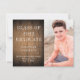 Anúncio de graduação em fotografia masculina com um fundo de madeira marrom. Personalize com 3 fotos e informações.