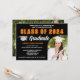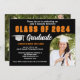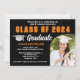 Este moderno convite à festa de formatura de fotografias a preto e laranja personalizado apresenta uma tipografia branca típica do seu nome de universidade para a classe de 2025. Personalize com o seu ano de graduação com o script manuscrito chic e formando boné para convites para excelentes. Adicione os detalhes da sua festa ou cerimônia ao lado da sua foto de formando.