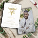 Comemore sua conquista em estilo com este médico moderno MD, convite para festa de formatura, com um design elegante com um caducério de ouro. O design limpo adiciona um toque de sofisticação. Tipo Dourado. Disponível em impressão, como download digital ou ambos.