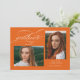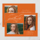 Orange Elegant Script 3 Photo Festa de formatura Invitation apresenta um belo e elegante roteiro sobre sua foto. Os detalhes da sua festa e fotos estão no verso.