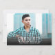 A palavra "formando" em um script de bloco branco legal junto com o nome do formando e o ano da classe (ou apagar essa linha) é impressa na frente desses convites de festa de formatura ou de cerimônia de graduação. Adicionamos uma camada preta de gradiente na parte inferior para que o "formando" possa ser lido sobre a sua foto. A palavra CELEBRATE e as informações pessoais do seu partido impressas no verso (a cor da borda pode ser alterada ou eliminada.) Mais designs na nossa loja.