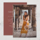 Convite para festa de formatura de fotos de um roteiro elegante com uma frente de foto de cheio e uma moderna parte de trás vermelha da carta com detalhes do partido.