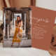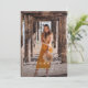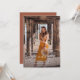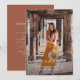 Convite para festa de formatura de fotos de script elegante com uma frente de foto de cheio e uma cor de laranja do terracotta moderna na parte traseira do cartão com detalhes da festa.