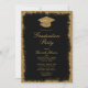 Convite Elegante de festa de formatura preta e dourada com quadro de brilho dourado e foto ao contrário. Copyright Elegant Invites, todos os direitos reservados.
