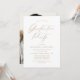 Convites simples de festa de formatura com "Festa de formatura" em um roteiro elegante de ouro com fundo branco. Personalize os convites para festas de formatura modernos com o nome do formando, a escola, o ano de graduação e os detalhes da festa abaixo. A parte de trás do formando minimalista convida a exibir sua foto de mais velho vertical favorita. Os convites são perfeitos para segundos graus e formandos universitários.
