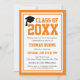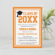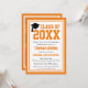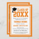 Este Convite à Festa de formatura de Fotos em Laranja e Branco é uma forma excelente de celebrar o segundo grau ou formando universitário. Personalize isso com o nome, escola, ano, detalhes da festa e a foto do formando no verso. Este convite apresenta uma tipografia ousada nas cores laranja da escola, com uma borda laranja e branca.