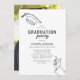 Convites de festa de formatura minimalistas com um simples desenho de linha de um boné de mão e formando de um homem, uma foto atrás, e um modelo de texto moderno que é fácil de personalizar.