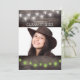 Chamadas de festa de formatura para fotos do tema rustic country wood- planadores de madeira de celeiro de vindima borda no topo e no fundo. Foto personalizada de graduação no centro. No topo estão as luzes do crânio de vaca que parecem brilhar. Bottom tem as luzes do cacto sudoeste 'brilhando'. Personalizado com o nome do formando e exibe "Classe de" personalizada com ano no topo. A parte traseira exibe informações personalizadas de festa de formatura com fundo de madeira rústica correspondente e luzes sudoeste. Nota: Todas as imagens são impressas. Use o botão Personalizar para alterar qualquer coisa - estilos de fonte, tamanhos, cores ou posicionamento. Fotografia da graduação ocidental rustica convida para cowboys e cowboys, graduações rústicas e temas do sudoeste. Temos mais convites para a graduação em nosso compro Zazzle.com/angela65. A formatura rustica ocidental convida-o a ser personalizado.