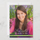Anuncie seu segundo grau ou formando universitário em estilo com este anúncio de graduação e convite de festas "Sleek Stripe". A placa dupla possui duas fotos do formando e um simples design de sobreposição que destaca o nome e a foto. Folhagem de folha de tendência verde e branco.