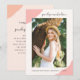 Este convite moderno e elegante de festa de formatura fotográfica apresenta imagens cor-de-rosa-chic e cor-de-pêssego com uma fotografia, e o nome do formando no roteiro bonito. Este convite para festas de formando é uma forma perfeita de celebrar o seu formando de tendências.