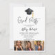 Celebre o grande dia do formando com este convite moderno e simples para a festa de formatura. Apresentando quatro slots de fotos personalizáveis para mostrar suas memórias favoritas, uma ilustração elegante de aquarela de boné de formatura preto e uma fonte elegante em um fundo branco. A parte traseira da placa destaca o retrato do formando, o ano de classe e os detalhes do grau, acrescentando um toque pessoal. Este design versátil é perfeito para segundos graus, faculdade ou graduações universitárias, e todas as cores e textos são totalmente editáveis para um toque personalizado.