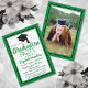 Envie este convite à Festa de formatura de Fotos Verde e Preta aos amigos e familiares para celebrar o seu segundo grau ou formando universitário. Personalize-o com o nome do formando, a escola, os detalhes da festa e a fotografia no verso. Este encantador espírito escolar convida as cores pretas e verdes da escola com uma letra feminina.